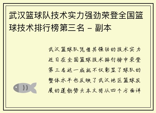 本文将围绕"杭州篮球队边路渗透战术解析与实战应用探讨"这一主题进行深入分析。首先,文章将对边路渗透战术的基本概念进行定义,并探讨其在现代篮球比赛中的重要性。接着,将分四个方面详细阐述该战术的实施策略、技术要点、实战案例及其对球队整体战术体系的影响。此外,文章还将结合杭州篮球队的实际情况,分析如何有效...
